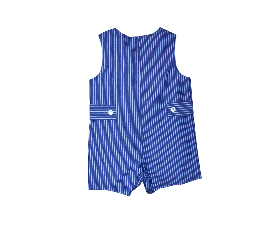 Timeless charm meets everyday comfort in our Seaside Stripes Romper. This classic blue and white striped piece is perfect for playdates, portraits, and everything in between. With crisp vertical pinstripes, white trim, and decorative back pocket flaps, this outfit delivers vintage flair with a modern sensibility.