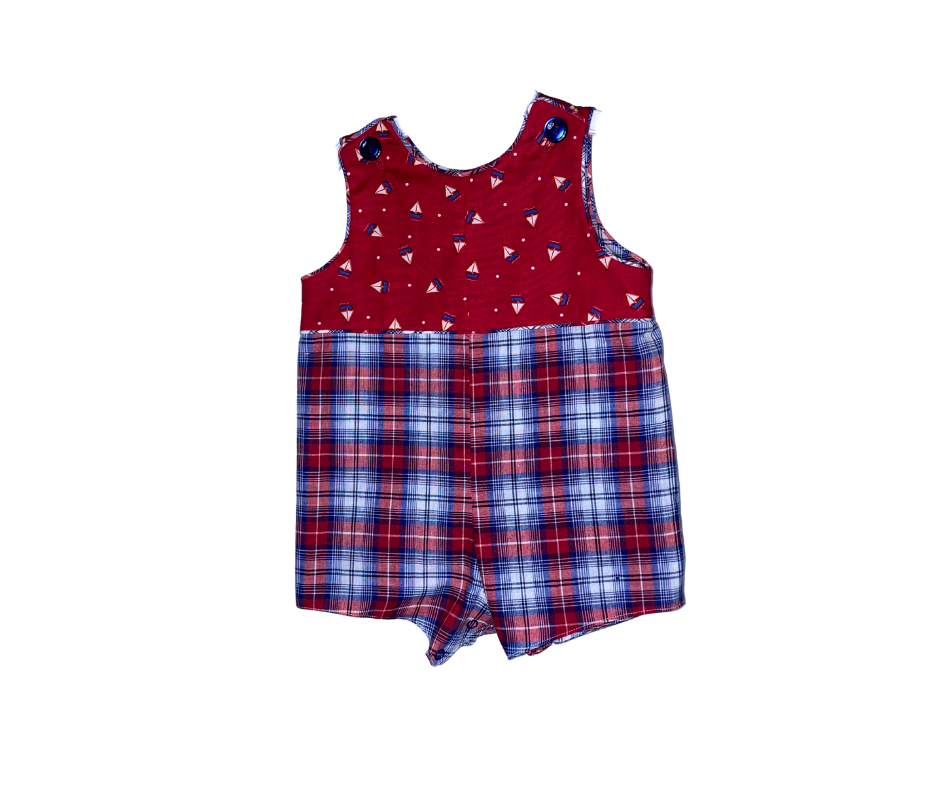 Ahoy, little adventurer! Our Set Sail Romper is the perfect pick for your baby boy’s summer explorations. With a bold red bodice dotted with tiny sailboats and soft plaid bottoms, this one-piece brings a wave of charm to any warm-weather day.