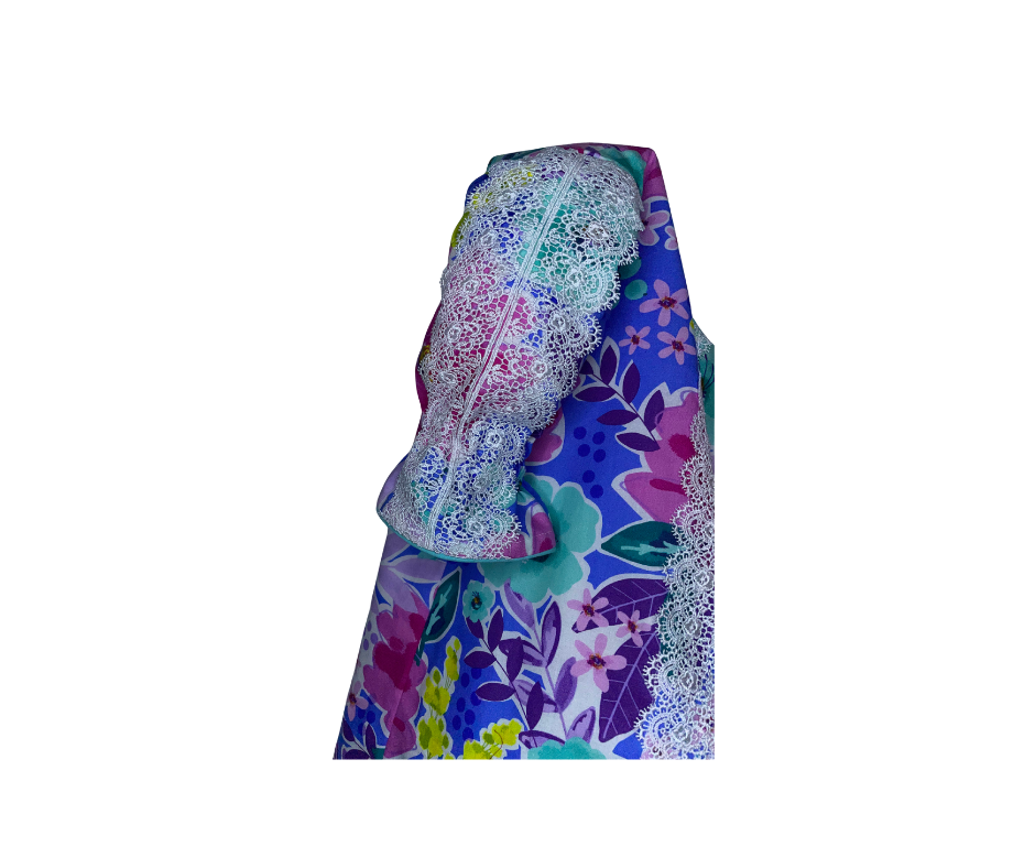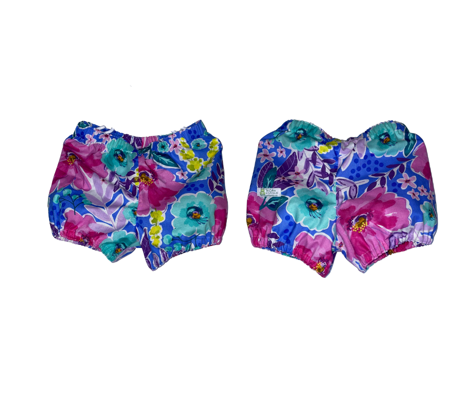Features: Flutter sleeves, fully lined, classic floral pattern, comfortable elastic waistband on bloomers